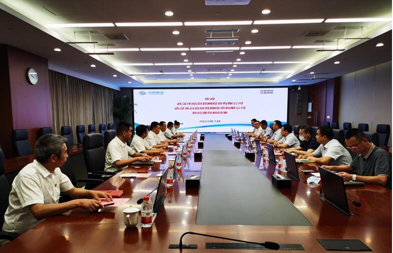 7月15日,市信息管網公司黨委書記、董事長汪小云,總經理、黨委副書記韓英進帶隊拜訪中國移動武漢分公司,與中國移動武漢分公司總經理董偉就深化合作開展座談交流。中國移動武漢分公司副總經理張景超,市信息管網公司黨委委員、副總經理吳曲濤及參股公司武漢光谷信息管網公司相關人員參加座談。