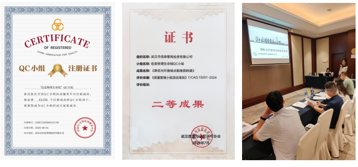 2025年7月2日—7月4日,武漢質量認證與認可協會召開QC質量管理小組成果發布會,市信息管網公司“信息物理生命線”QC小組憑借《降低光纖接續點割接損耗值》課題成果,斬獲武漢市質量管理小組成果發布二等獎。