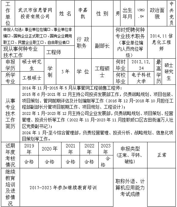 李嘉凱同志提供的“申報材料”相關(guān)證件已經(jīng)本單位審查,同意推薦其申報電子信息與通信工程系列 建筑智能化專業(yè)高級工程師(職務(wù))任職資格評審。其《綜合考評一覽表》及主要業(yè)績情況,已按省、市有關(guān)規(guī)定,在本單位公示。